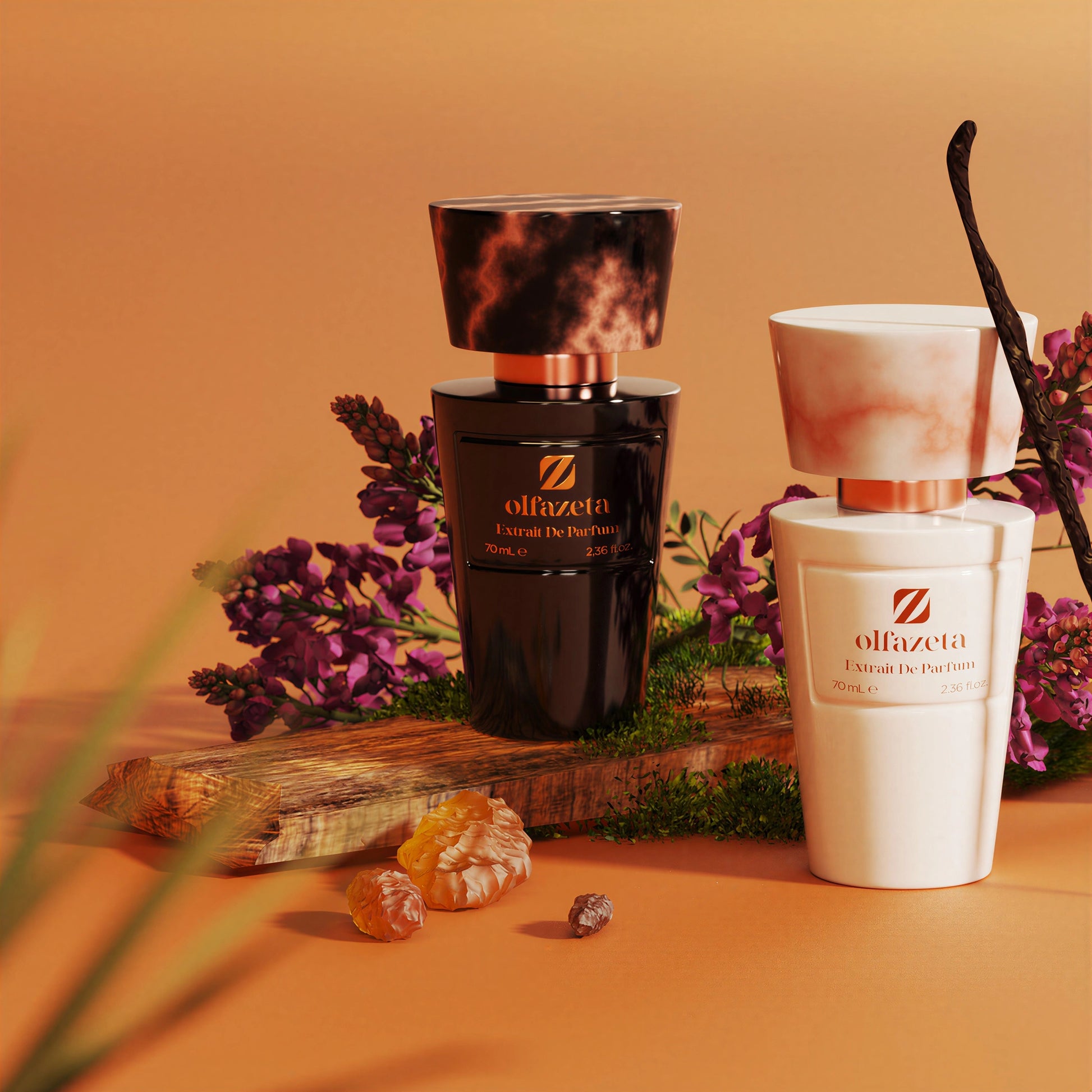 O extrato de perfume, também conhecido como absoluto de perfume, é a forma mais pura e concentrada de fragrância. Os nossos extratos de perfume Olfazeta contêm 30% de concentração. Em comparação, a eau de parfum contém geralmente entre 8% e 20%. A eau de toilette, entre 4% e 8%.